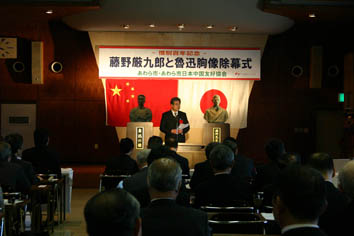 中国驻日本大使王毅因其他公务未能出席典礼,特委派李东翔公使参加并代为宣读致词。北京鲁迅博物馆馆长孙毅和芦原市市长松木干夫在仪式上讲话。他们表示,要以铜像安放为契机,继续深入研究和宣传鲁迅先生和藤野先生的事迹,为加强中日友好交流做出贡献。