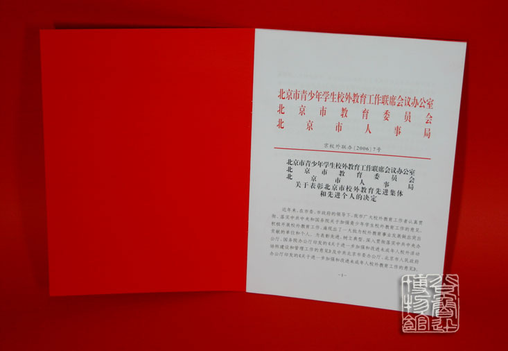 我馆郑智同志被北京市青少年学生校外教育工作联席会议办公室、市教委和市人事局授予“北京市校外教育先进个人”荣誉称号