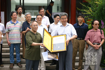 《古都版画》是在上世纪末本世纪初着手创作的一套反映北京名胜古迹的风景画,共计一百幅。这套版画的创作和印制期间,正值北京申奥成功进入筹办阶段,自然就成为我献给北京奥运会的一份礼物。这套版画完成后,于2005年参加了“北京第五届旅游商品设计大赛展览会”并获大会优秀奖,受到各界欢迎与关注。后来在汉煜昭唐(北京)国际文化公司的运作下,作者将此套版画献给北京奥组委,2007年6月,时任北京市市长兼北京奥组委执行主席王岐山认为此画反映了“人文奥运”精神,遂亲自批示作为奥组委首先启用的美术作品。现在这套版画参加“北京奥林匹克文化节”,由文化节组委会、鲁迅博物馆、汉煜昭唐文化公司和水利部展览音像中心共同推出主办了这个展览会,并由鲁迅博物馆举行《古都版画》捐赠仪式,意义绝非一般。鲁迅博物馆是纪念鲁迅先生的圣地。大家都知道鲁迅先生不仅是我国伟大的文学家、新文化的倡导人,同时也是一位美术家,特别是“新兴版画”的创始人、导师?!豆哦及婊纺芄蝗氩赜诠衣逞覆┪锕?、受到北京奥组委的如此重视,令我这个普普通通的画家感到莫大的荣幸。今天《古都版画》能够受到如此重视,要感谢主办单位的各界领导,感谢孙郁馆长在他刚才的讲话中对本人的褒奖,感谢曾经在《古都版画》的创作与印制中帮助过我的老师们、朋友们,感谢今天前来参加开幕式的朋友们、来宾们。在此,我由衷地表示愿和大家共同为北京奥运会和古都北京做出更多的、有意义的事情!谢谢大家!