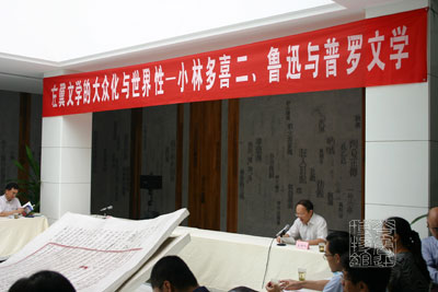 北京鲁迅博物馆副馆长黄乔生研究员主持研讨会。会议围绕人民文学出版社最新出版的新译《蟹工船》及其漫画版展开,《蟹工船》是80年前日本无产阶级作家小林多喜二的杰作,1929年连载于当时的无产阶级文学杂志《战旗》上,成为整个日本无产阶级文学的颠峰之作。2008年末,美国的金融危机席卷全球,《蟹工船》在日本持续热销,再次成为社会广泛关注的文学作品。与会代表就小林多喜二、鲁迅与普罗文学进行了深入、热烈的讨论。