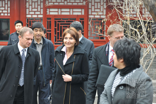3月18日上午,匈牙利社会党主席兰德沃伊·伊尔迪科访问了北京鲁迅博物馆,在馆领导的陪同下,参观了鲁迅故居和鲁迅生平事迹展览,并向馆内的裴多菲铜像献花。