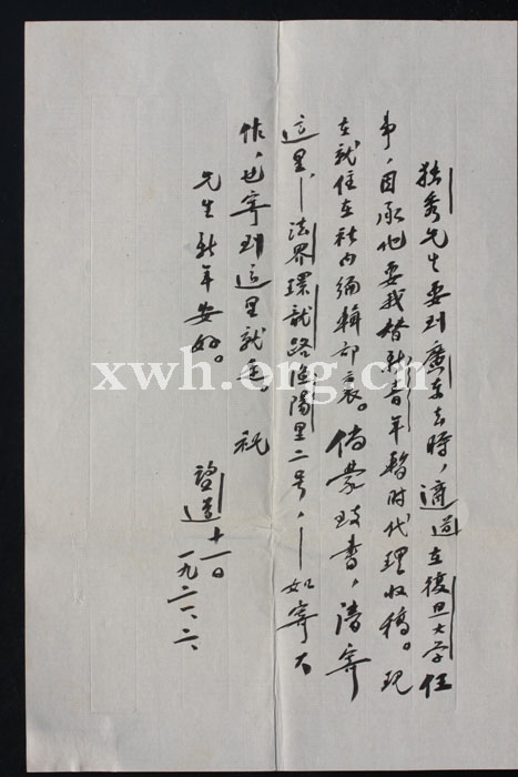 1921年,陈望道在复旦大学任教时,陈独秀去广州,将编辑《新青年》的事情交付于陈望道,在这种情况下,陈望道于2月11日给钱玄同写了此信。