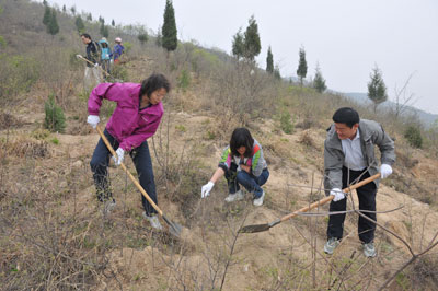 2012年4月18日,北京鲁迅博物馆全体职工在馆领导赵国顺副书记、何洪副馆长的带领下,来到怀柔青龙峡进行一年一度的义务植树活动。相较于去年地势平坦而树苗粗壮的情况,今年同志们则要握着细小的树苗爬山上坡,在半山腰、山顶等地挖坑培土。被种下的树苗与周围的松树、酸枣树穿插交错,使整座山看起来生机盎然,今秋新种下的黄栌会为景观增添新的色彩。