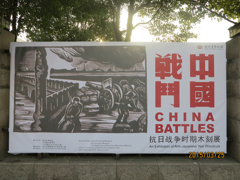 2015年3月24日,由湖北省博物馆、北京鲁迅博物馆(北京新文化运动纪念馆)联合举办的“中国战斗——抗日战争时期木刻展”在湖北省博物馆综合馆正式拉开帷幕。湖北省文物局副局长赵令珍,湖北省博物馆馆长方勤,党委书记、常务副馆长万全文,北京鲁迅博物馆(北京新文化运动纪念馆)常务副馆长黄乔生,原中国艺术研究院研究员、胡风之女张晓风出席了本次展览的开幕式。开幕式由湖北省博物馆党委书记、常务副馆长万全文主持。
