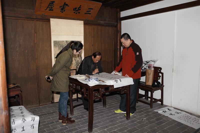 4月5日,清明节当天,在笔会中获奖的书法高手齐聚新文化运动纪念馆,在红楼缅怀先贤。从启蒙思想、领导新文化运动的陈独秀,五四运动的青年骨干毛泽东、周恩来,为建党事业投身革命的李大钊,到以笔为枪永不休战的鲁迅,他们用翰墨书香献出了对新文化先贤最好的纪念。现场求赠书画的观众对鲁迅老邻居书画的高超技艺均赞不绝口,纷纷表示:通过中国传统的书画展现新文化先贤的文化思想,形式直观可感,让他们获益匪浅。