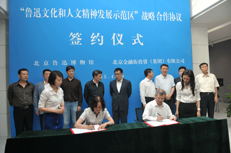4月29日下午,北京鲁迅博物馆(北京新文化运动纪念馆)与北京金融街投资(集团)有限公司关于“鲁迅文化和人文精神发展示范区”战略合作协议签约仪式在北京鲁迅博物馆陈列厅序厅隆重举行。国家文物局党组长成员、副局长宋新潮,北京鲁迅博物馆(北京新文化运动纪念馆)党委书记、馆长郭俊英,副馆长何洪,党委副书记李战崎,馆长助理兼办公室主任李金光和中共北京市西城区委书记王宁,区委副书记、区长王少峰,常务副区长孙硕,区委常委、区委办主任孙硕以及区人大副主任、北京金融街投资(集团)有限公司董事长王功伟,总经理鞠瑾等领导同志出席了签约仪式。签约仪式由北京市西城区政府副区长郝凤林主持。