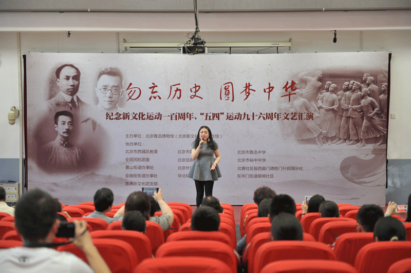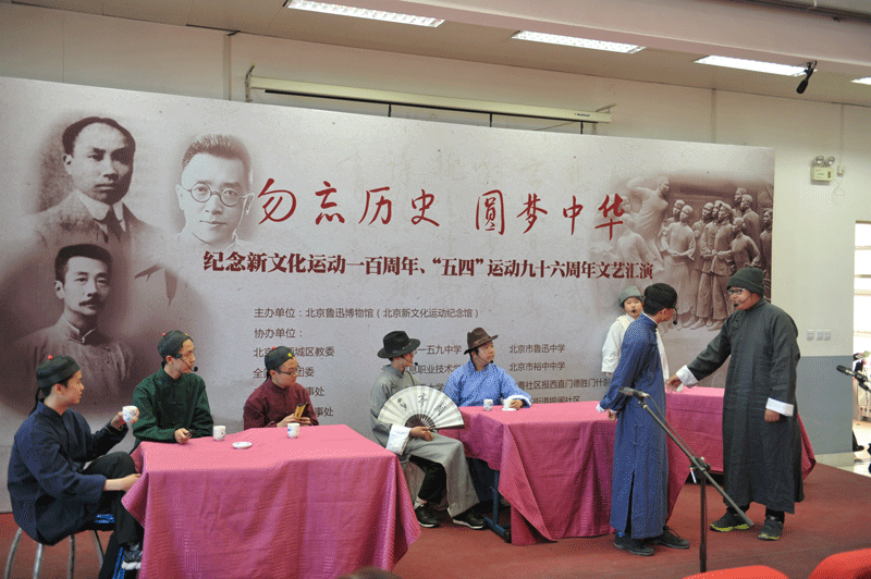 为纪念新文化运动100周年,北京鲁迅博物馆(北京新文化运动纪念馆)于4月29日推出大型展览《旧邦新命—新文化运动百年纪念展》。该馆配合此次大型展览,联合东城区、西城区等十余家共建单位于5月4日下午在北京市第一五九中学举办了“‘勿忘历史 圆梦中华’—纪念新文化运动一百周年、‘五四’运动九十六周年”文艺汇演,引导公众和广大青少年了解中国历史,深刻感受中国成就,热情讴歌中国共产党的光辉历程,大力弘扬奋斗精神和“爱国、进步、民主、科学”的“五四”精神,引导青少年牢固树立中国梦的远大理想,坚定跟党走中国特色社会主义道路的信念,增强将个人梦想融入中国梦、勇于奋斗圆梦的信心。