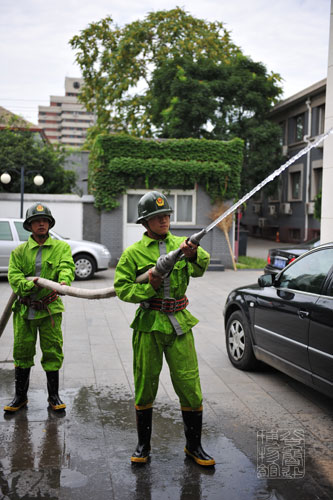 以上是8月5日,我馆组织馆内工作人员进行灭火器实喷训练和志愿消防队训练的几个画面。