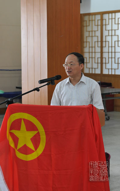 杨晋英书记代表鲁迅博物馆致欢迎辞,他说,要全面建设小康社会,实现经济社会跨越发展,党员干部特别是青年党、团员必须始终保持先进性,大力发扬争先创优精神。青年人要自觉把个人成长与社会发展紧密相连,立足本职,开拓创新,为推动科学发展作出积极贡献。