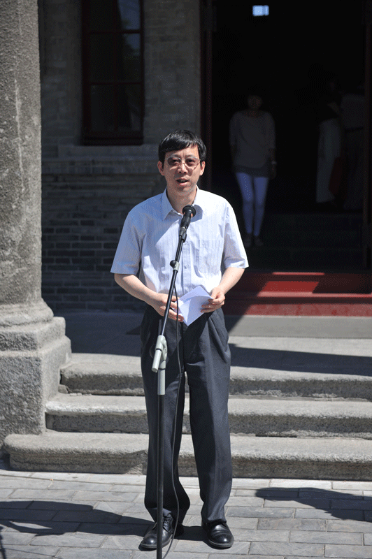 由北京鲁迅博物馆(北京新文化运动纪念馆)主办的“中国战斗——抗日战争时期木刻版画展”,于2015年7月3日上午9:30在北大红楼开幕。国家文物局博物馆与社会文物司司长段勇,北京鲁迅博物馆(北京新文化运动纪念馆)党委书记、馆长郭俊英,常务副馆长黄乔生,副馆长何洪、安来顺,党委副书记李战崎,馆长助理兼办公室主任李金光,著名版画史家、鲁迅研究专家、研究馆员李允经先生,著名版画家刘岘之女王人殷,著名版画家古元之女古安村,原中国艺术研究院研究员、胡风之女张晓风,著名版画家元国梁等出席了本次展览的开幕式。开幕式由常务副馆长黄乔生同志主持。