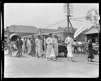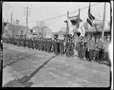 11月14日的这次集会被称为游街大会,实际变成中国方面庆祝一战胜利的一项活动,甘博有9张照片记录了游行队伍的情况,可见当时的盛况(图4、5)。