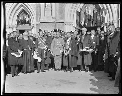 图7,出席祈祷大会的来宾,左起陆徵祥、天主教北京教区主教林懋德、法国公使包朴、段祺瑞、日本公使林权助、比利时公使莫耶。