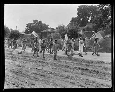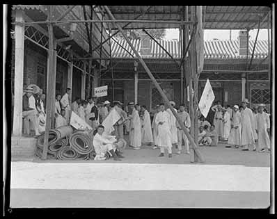 甘博给这三张照片命名为6月28日,学生和总统(June 28 Students & President),拍摄对象应为学生。我们从照片中可以看到他们有饮水(图24),露宿时可能睡在草席上(图25)。#p#分页标题#e#