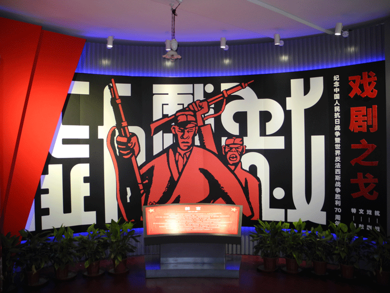 展览精选戏剧剧本、期刊、海报、戏单、宣传单等各类抗战时期戏剧文献200余件,既真实反映了抗战时期的戏剧演出状况,又串接起了一部从1931年至1945年的中华民族抗战史。展览独辟蹊径地以戏剧结构作为展陈结构,致力于将展览打造成一出“话剧”。以三幕内容为展示主体,配以序幕和尾声的五个部分,分别是“序幕”、“枕戈达旦——抗战戏剧的前奏”、“擐甲挥戈——抗战戏剧的兴起”、“挥戈退日——抗战戏剧的高潮”、“尾声”。展览巧妙地将“戈”字融入每个部分,借用典故深化了主题的表达。