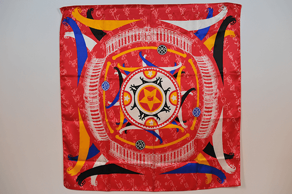 说明:产品图案以北大红楼及北京新文化运动纪念馆LOGO为设计元素,图案中的大圆由北大红楼围成;四角是北京新文化运动纪念馆LOGO的延伸,象征五四游行示威时高举的手臂;色彩为中华民国国旗的色彩:红、黄、蓝、白、黑。