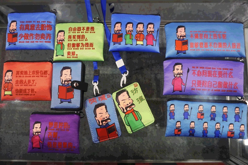 “鲁迅漫画像”系列文创产品。1936年1月13日,日本画家堀尾纯一在上海内山书店为鲁迅作漫画肖像一幅,并在背面题词:“以非凡的志气,伟大的心地,贯穿了一代的人物。”当天鲁迅日记记载:“午后往内山书店,遇堀尾纯一君,为作漫画肖像一枚,其值二元。” 以此漫画像为底本,进行创意设计,最大限度保留漫画像中的鲁迅神态,设计出四个色彩鲜明、亲和可爱的鲁迅卡通形象,寓意读书、演讲、行路、战斗??ㄍㄐ蜗笤倥渖下逞阁鹧?,如零钱包上印有:“自由固不是钱所买到的,但能够为钱而卖掉”,具有趣味性又蕴含哲理。