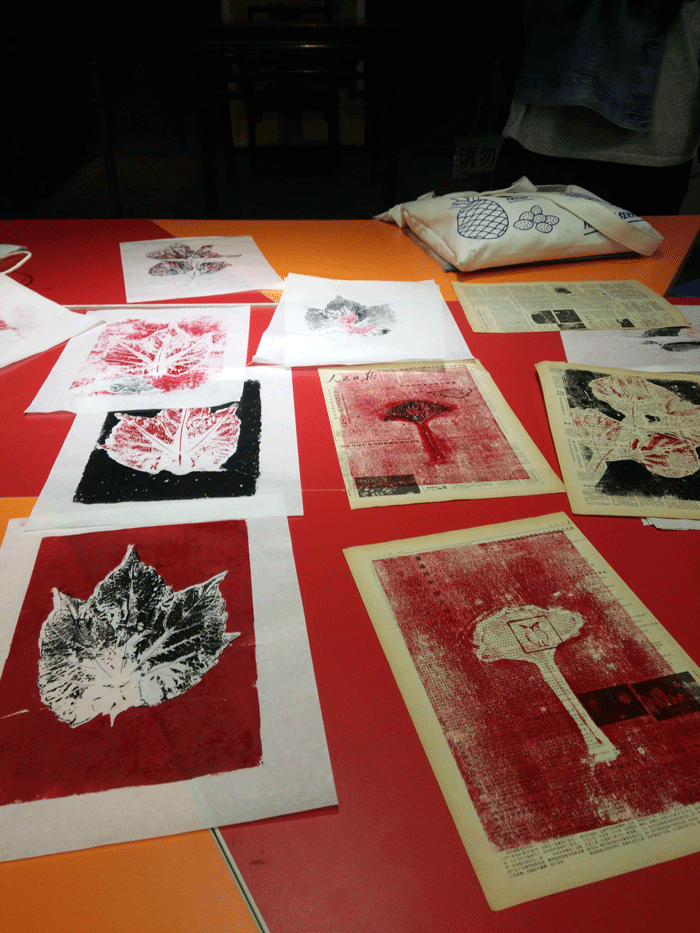 10月5~7日推出第二个主题活动——“纸上春秋—书画与落叶的散文诗”,“一叶知秋”把树叶、油墨和旧报纸结合起来,让参与者体验波普范儿的版画漏印设计;“翰墨书香”、“书画‘封’情”从鲁迅珍藏藏书票拓印到艺术书皮创作,不仅可以学习现代版画拓印技巧,也是对藏书文化的一次深度接触。通过对鲁迅书刊设计的学习,参与者会深切体会到鲁迅在书籍装帧设计上得匠心独运。