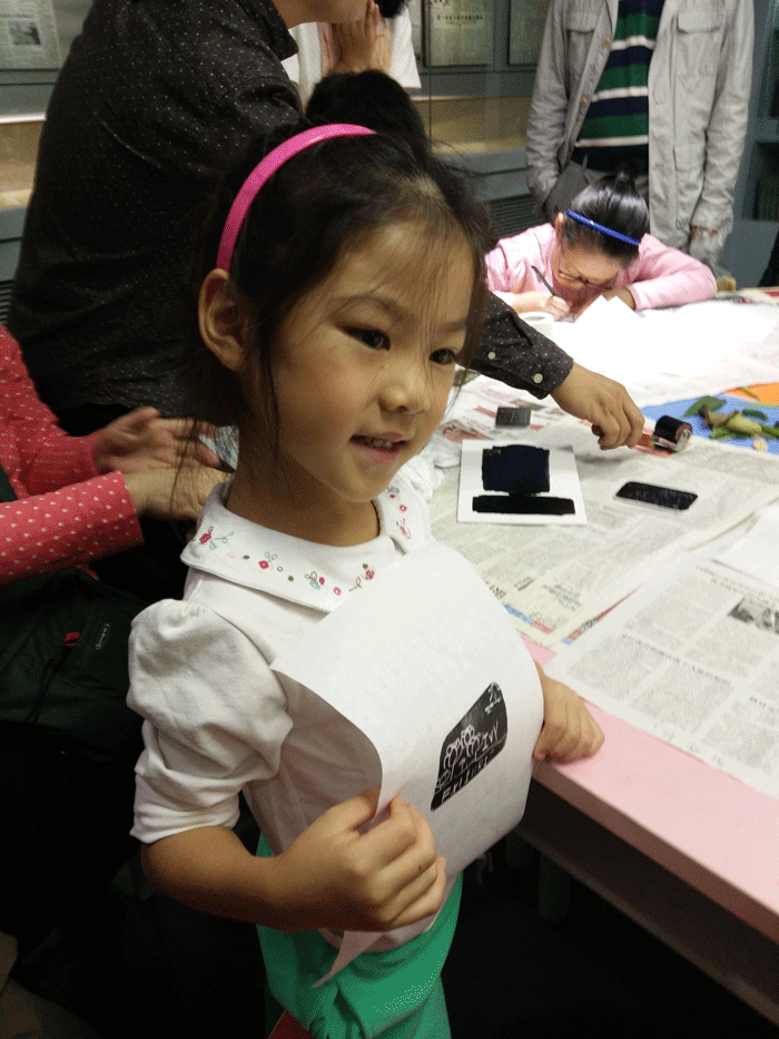 孩子们总会给艺术带来惊喜,这个国庆在鲁博就收获了一个个关于孩子与艺术的惊喜。印制鲁迅先生珍藏版画与老师的引导,让孩子们在创作自己的版画首秀时显得尤其的游刃有余。一条小鱼、几点波浪、一个签名、几丛小花,这些稚拙又活泼的线条,通过孩子们手中的刻刀诞生在印版之上,又通过油墨的印刷,创作出自己人生中第一枚印章、藏书票,孩子带给“大人”一个充满童趣和文艺范儿的国庆假日。