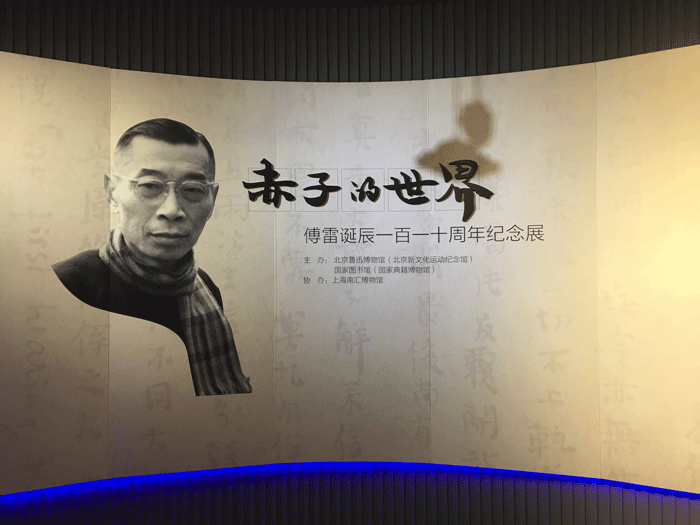 2018年是傅雷诞辰110周年,由北京鲁迅博物馆(北京新文化运动纪念馆)、国家图书馆(国家典籍博物馆)主办,上海南汇博物馆协办的“赤子的世界——傅雷诞辰一百一十周年纪念展”于2018年4月13日在北大红楼开展。