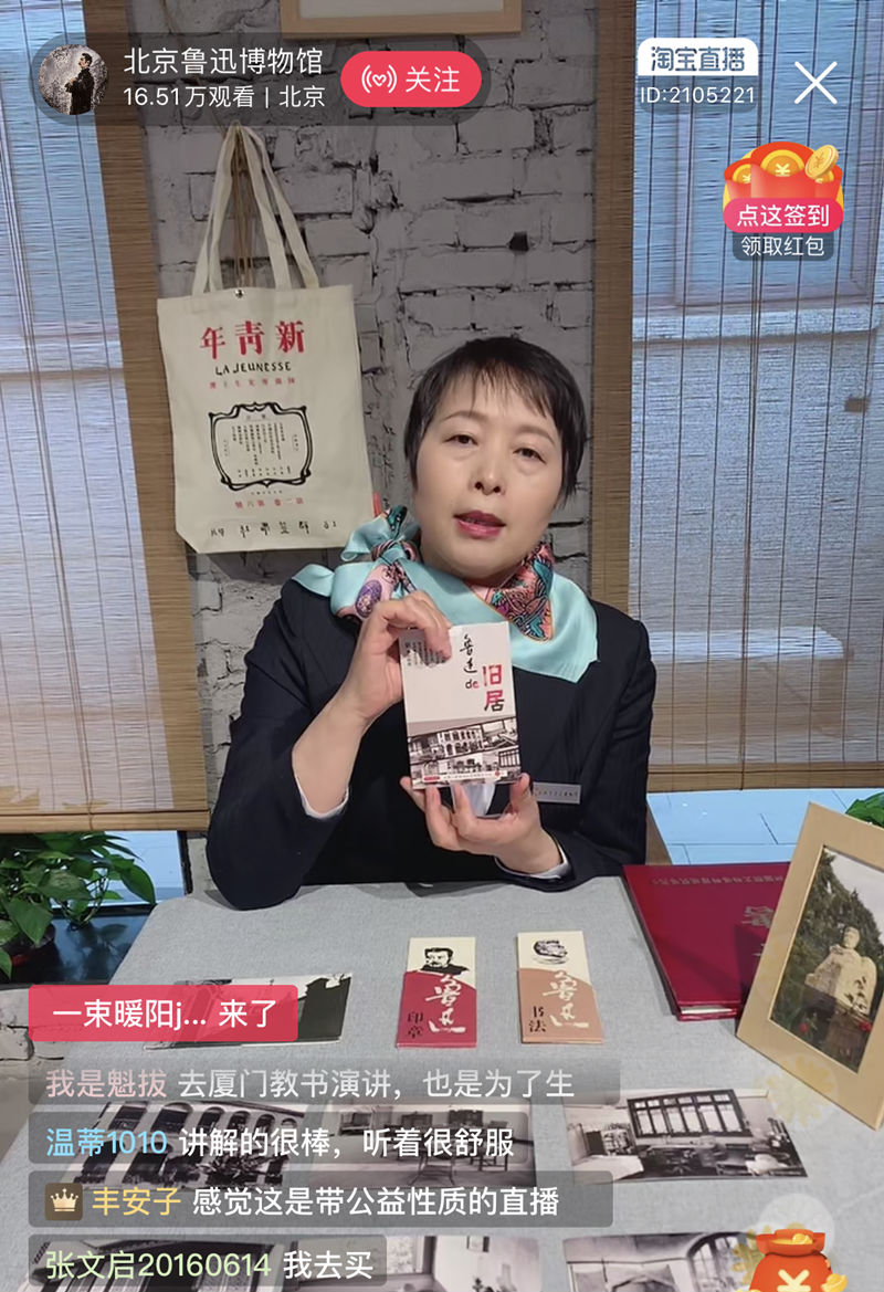 4月5日,北京鲁迅博物馆联手淘宝网进行了长达2个多小时的“清明时节怀鲁迅”直播活动,在线观众观看人数达73余万人次、互动量16.4万人次。
