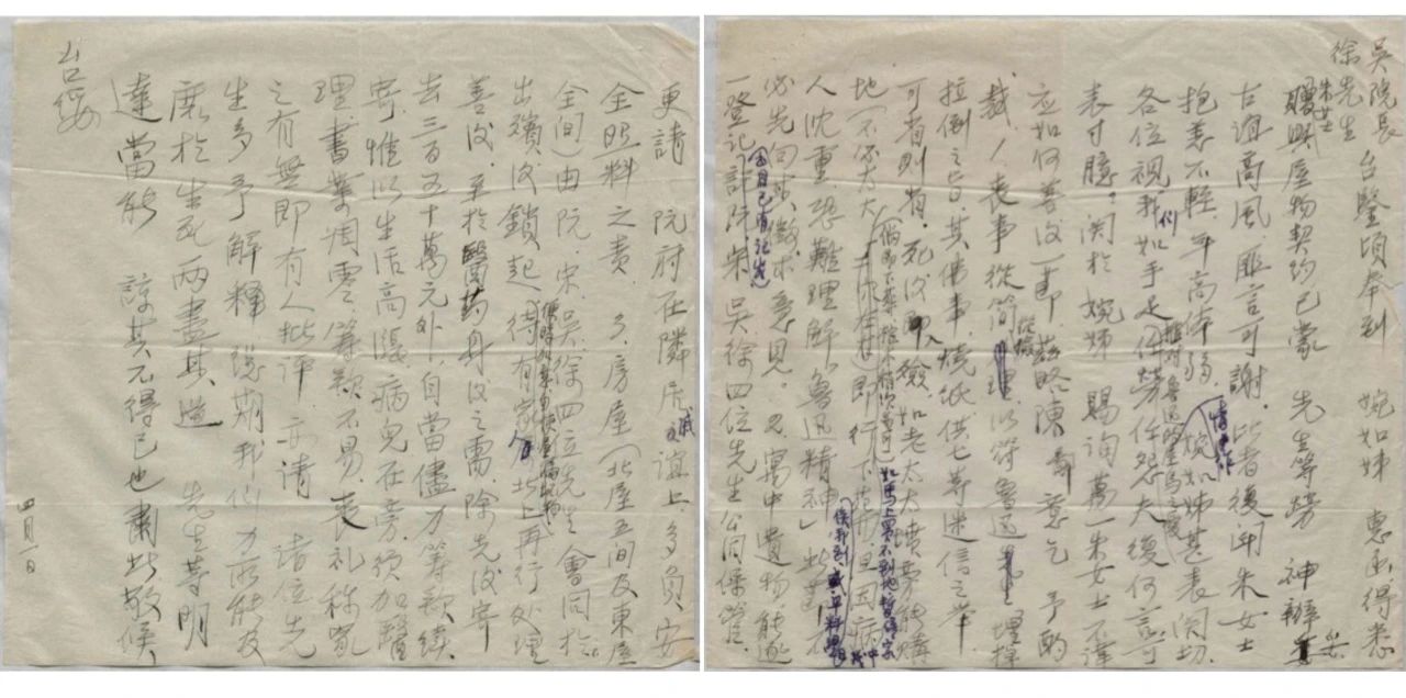 寓所鲁迅遗物事致吴昱恒、徐盈信。
