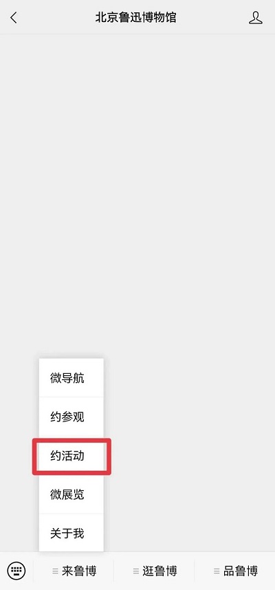 1.关注“北京鲁迅博物馆”微信公众号,在左下角“来鲁博”栏目中点击“约参观”,按照相应流程完成参观预约(同行者也须预约);