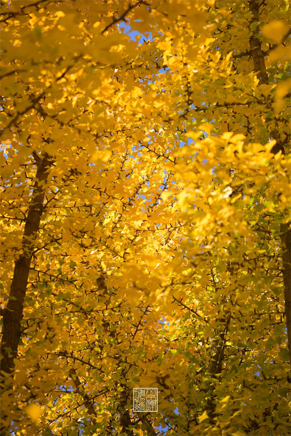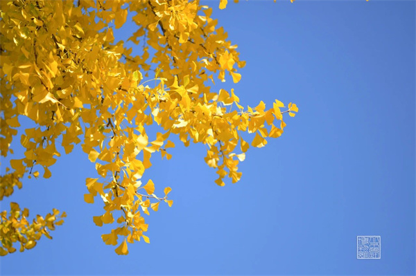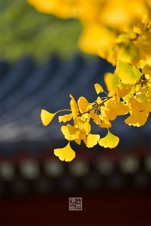 走进博物馆,首先映入眼帘的便是那一片金黄的银杏叶。阳光轻柔地洒下来,银杏叶仿佛被点亮了一般,闪耀着温暖的光芒。每当有风吹过,叶片纷纷扬扬落下,像是无数小小的金色扇子在空中摇曳生姿。