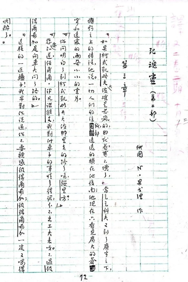 鲁迅临终前为《译文》“赶译”《死魂灵》第二部。其中第一、二章分别连载于当年3、4、5月份的新一卷第一、二、三期。5月8日,病中的鲁迅开始翻译的第三章具体何时译迄已不可考。第三章译文手稿首页写有“《译文》二卷二期十月”字样,似为编辑批注。按照《译文》至少提前一个月编辑下一期的惯例,鲁迅投递给《译文》的第三章译稿约在9月之前完成。孰知鲁迅逝世前三天《译文》新二卷第二期刊出的第三章译文,文末“未完”二字竟成为译作《死魂灵》第二部“未完”的绝响。此外,鲁迅译《死魂灵》第二部手稿能得以留存下来,得益于他3月9日致黄源的一封信。信中称,译稿及《译后附记》已于昨日寄出,询问“《死魂灵》(按:第二部)原稿如可收回,乞每期掷还”[74],以备将来排印单行本之需。