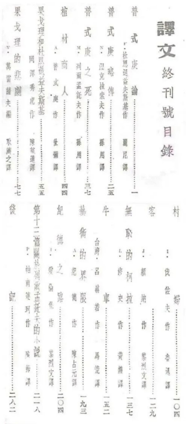 《申报》预告“三卷一号要目”与《译文》“终刊号目录”