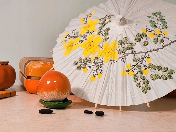 ——鲁迅的草木四季之春花油纸伞彩绘
