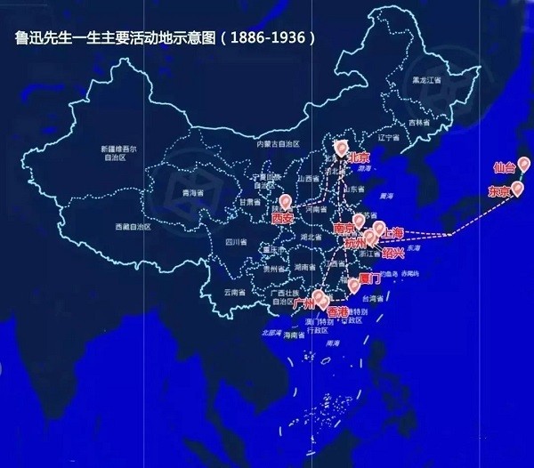 在鲁迅的文学人生中,北京处于一个什么样的位置呢?北京是鲁迅除了他的出生地绍兴之外居留时间最长的城市,前后加起来长达14年之久。以下是鲁迅在几个主要城市的停留时间:南京将近四年;东京六年;仙台一年半;杭州十个月;厦门四个月;广州三个月;上海九年。绍兴是他的故乡,如果要从他出生就开始计算,当然时间是最长的,达十七八年。其他如1924年在西安讲学将近一个月;香港一共去了三次,包括从香港借道去上海。所有这些城市中,除了绍兴还是在北京的时间最长。所以说北京值得特别的观察,特别的讨论。