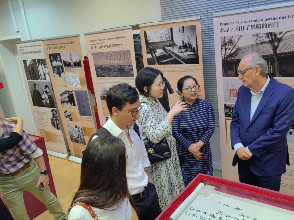 保利诺院长在开幕致辞中表示,北京鲁迅博物馆为我们带来了这次意义深远的展览,向巴西观众展示了中国“民族魂”鲁迅的文学道路及其参与世界文艺交流的实践,为中巴两国文学搭建了对话的桥梁。校方代表罗利姆教授指出,这样的文化分享将激励世界各地的更多年轻人阅读鲁迅作品、深入了解中国的历史与文化。马里奥馆长强调,鲁迅的最打动人心之处在于他与普罗大众的联系,及反对旧制度的斗争精神??皇胶螅夜菅芯抗菰绷蹙参幢鲎隽讼晗附步?。