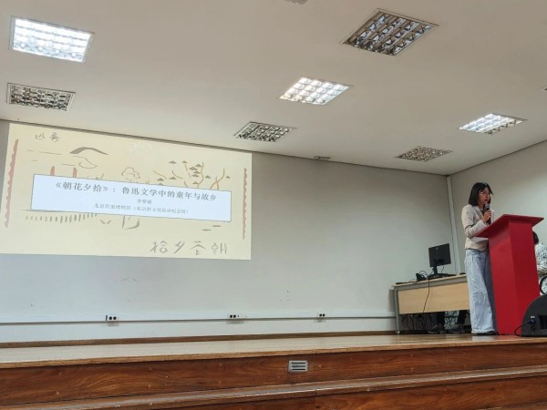 为配合展览的举行,我馆研究室职员李紫璇在孔子学院报告厅做了题为《<朝花夕拾>:鲁迅文学中的童年与故乡》主题讲座,生动讲述了鲁迅早年经历,谈到了绍兴水乡风物、有着无穷乐趣的百草园,以及迎神赛会、神话传说等民间文化对其一生创作的滋养,展示了鲁迅文字世界的诗意和精神力量。