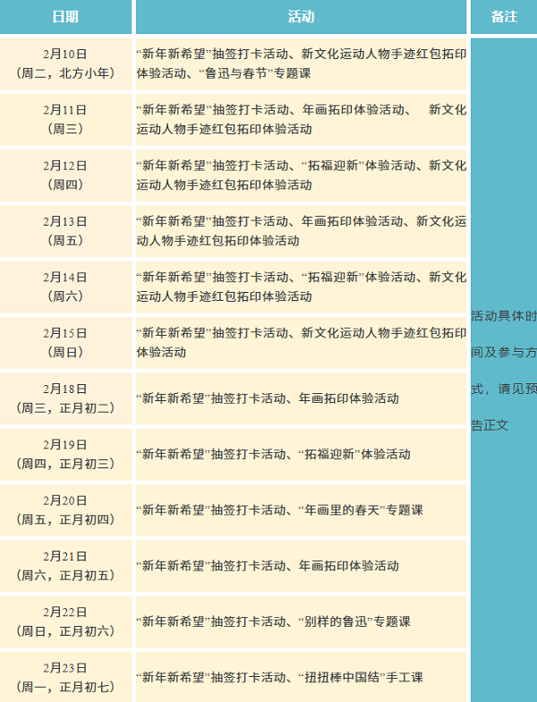 活动时间:2026年2月12日、2月14日每日9:30——10:30;2月19日10:30——11:30。